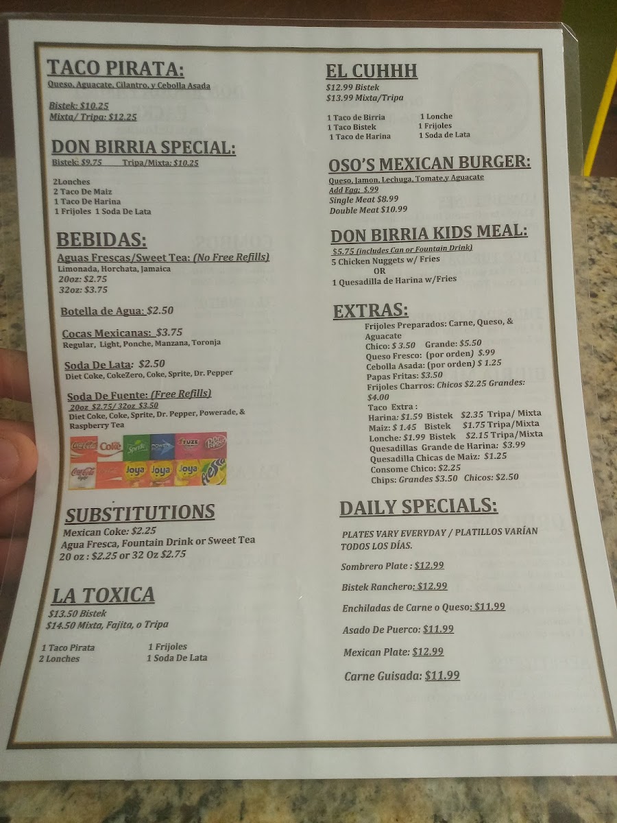 “ I come here for the food. Food is always delicious and hits the spot when craving Taqueria style/street taco food. Prices are good, and they do have specials on certain days. They have the classic mini tacos in corn and flour. They have lonches or Bolillo style taco. They do Birrria and have other things like mexican burgers and piratas/machetes. No free refills. Everything is in can or bottle. Aguafrescas are made daily, no free refill. They do serve beer and mechaladas. Staff is nice and never had an issue with special requests like crispy tripas. Don Birra and El Chatto off 1015 are my to go to spots in Weslaco. Better taqueria style food than Nana's, Compalitos, Tacolandia. ”